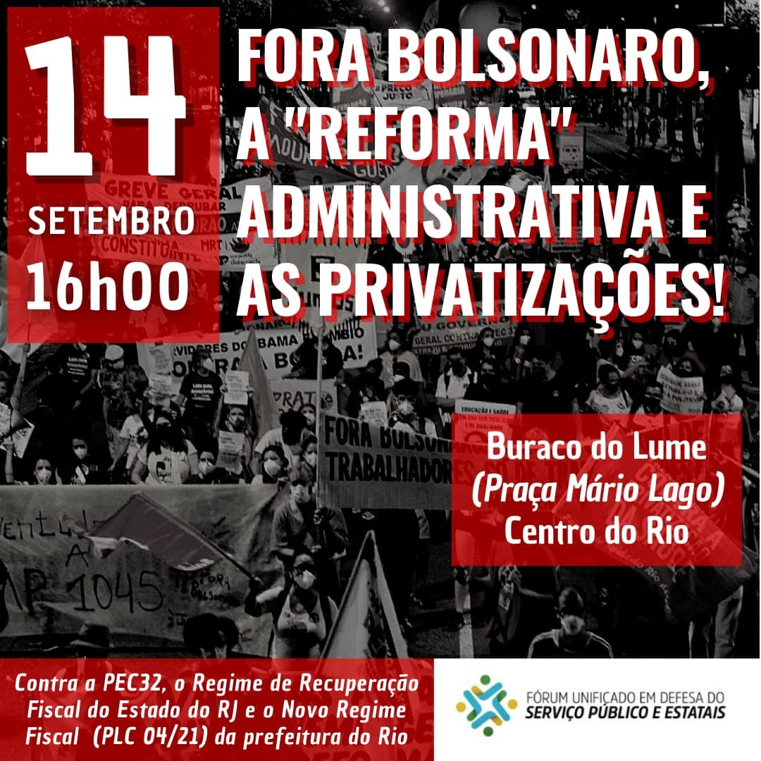 TODOS NO BURACO DO LUME (PRAÇA MÁRIO LAGO), NO CENTRO DO RIO DE JANEIRO, DIA 14 DE SETEMBRO AS 16:00 PARA FREAR A DITA REFORMA ADMINISTRATIVA E AS PRIVATIZAÇÕES!
